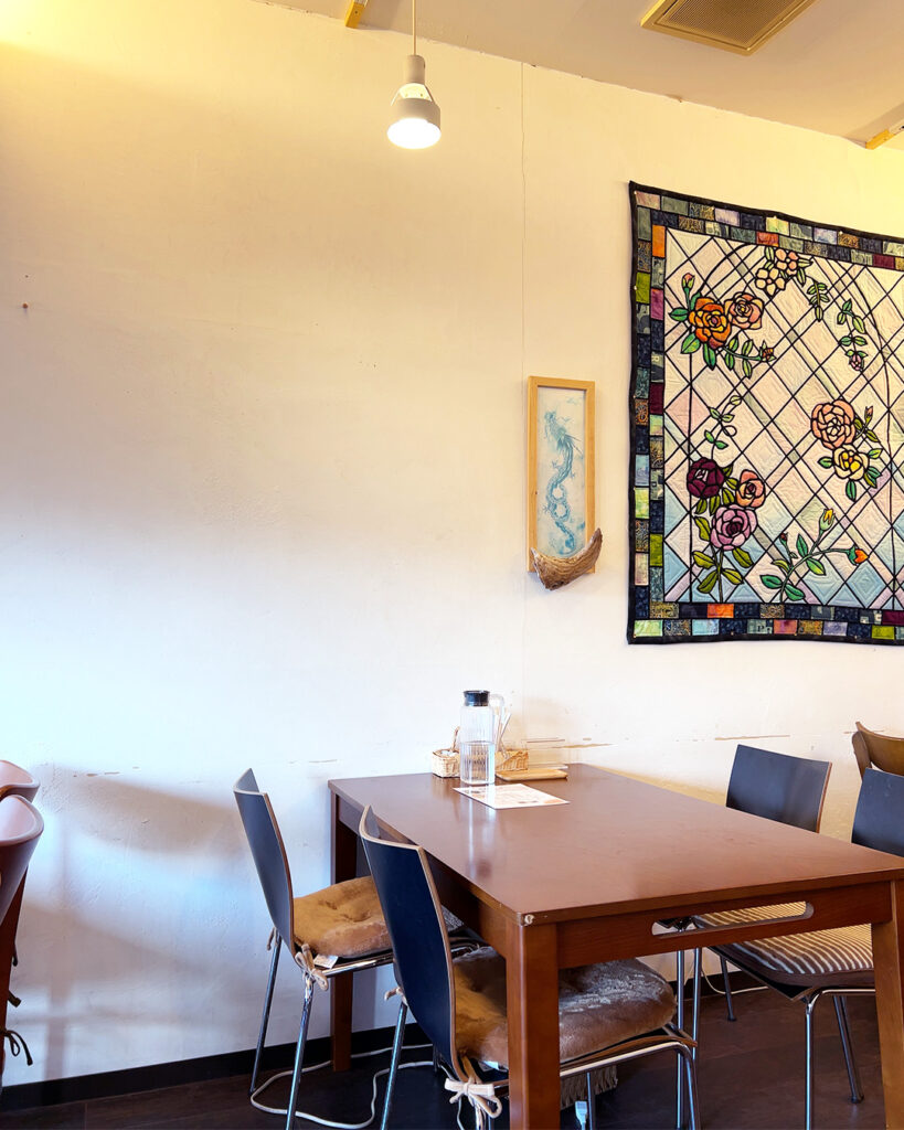 店内に飾られている手作りのキルトの話や、お隣にあるお寺の大きな木のこと🌳、最近汲めるようになった井戸の話。