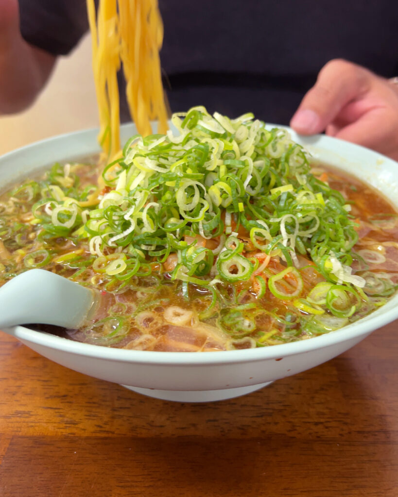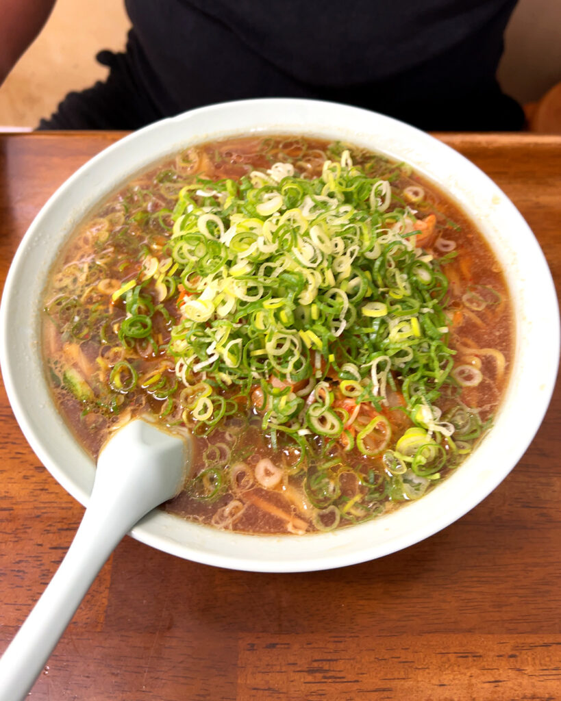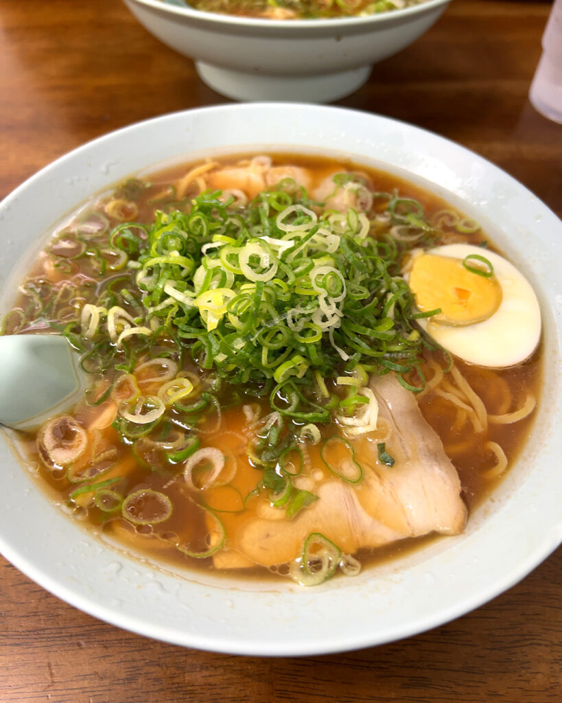 🍜 醤油ラーメンは濃いめの味付けでネギたっぷり。
