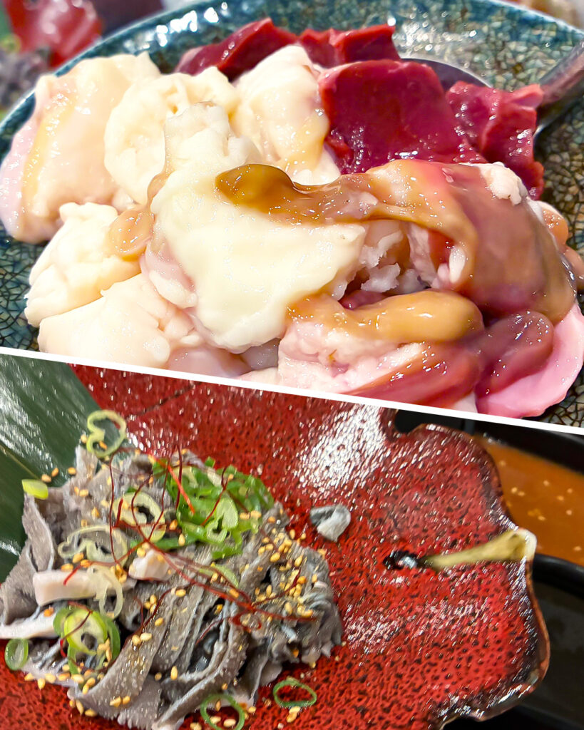 今回はもつ鍋に追加でせんまいや鶏むね肉の刺身もいただきました✨