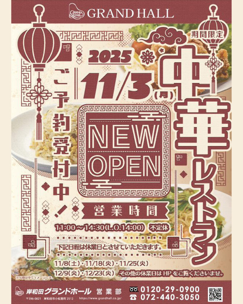 【期間限定】中華レストランが11月3日オープン!|岸和田グランドホール