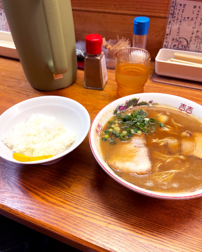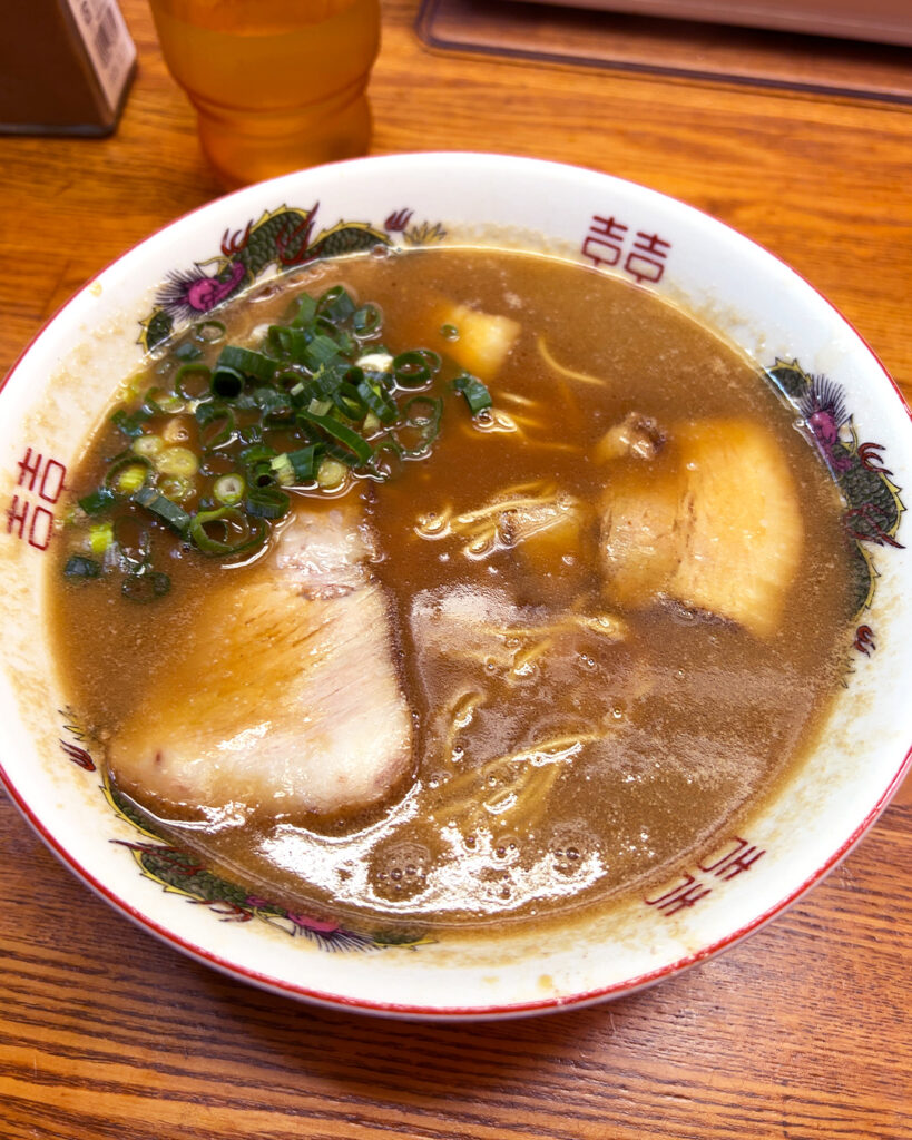 スープは濃いめの醤油ダレに豚骨の旨みがしっかり。