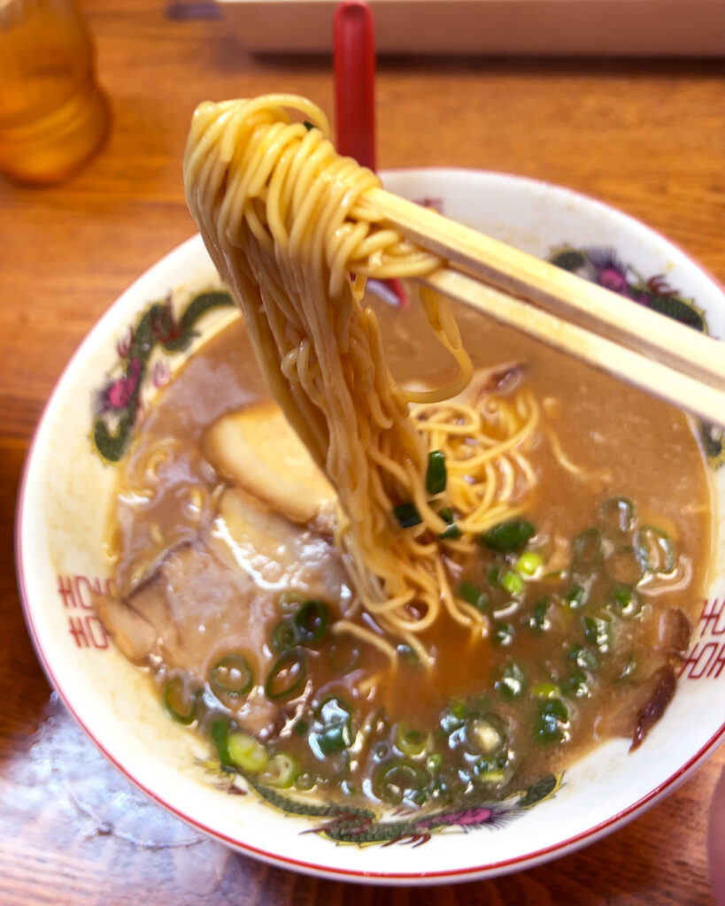 豚骨特有のクセもなく、中細ストレート麺とよく絡んで最後までおいしい🍜