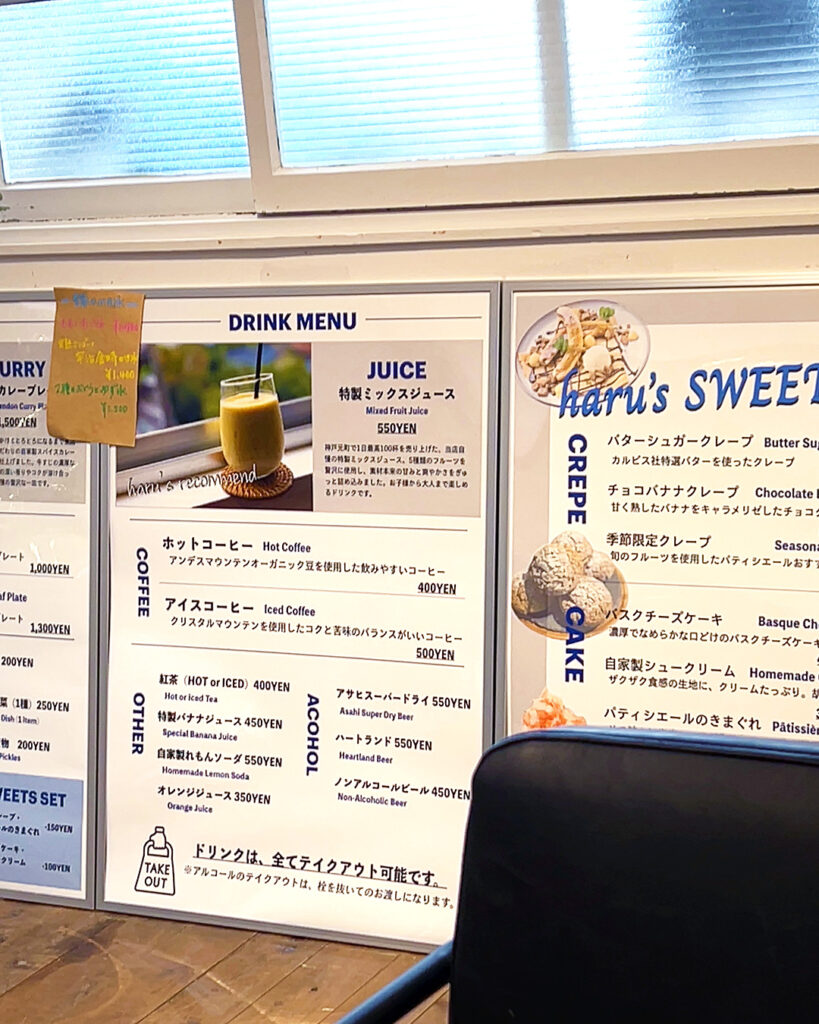 家族は「バターシュガークレープ」と「特製バナナジュース」を注文。