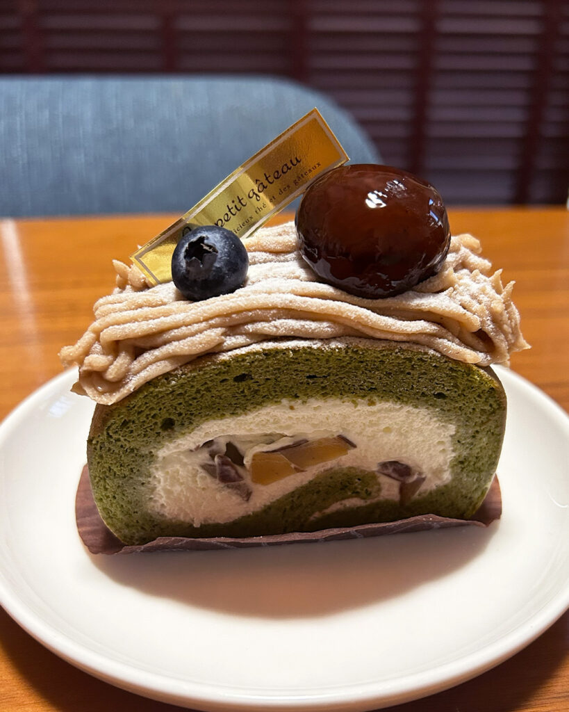 京都・宇治の抹茶を使用したスポンジはすごく美味しく、モンブランのような栗クリームと相性抜群🌰