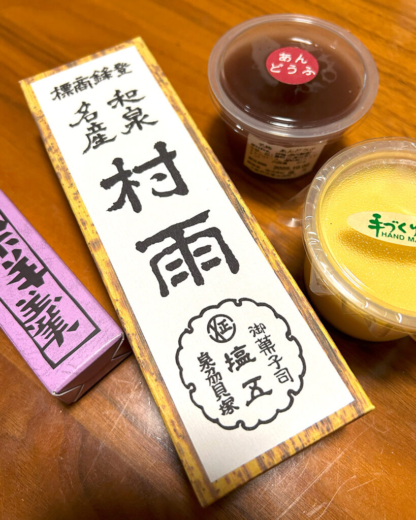 今回は「村雨」以外にも、プリン・あんどうふ・栗羊羹を購入。