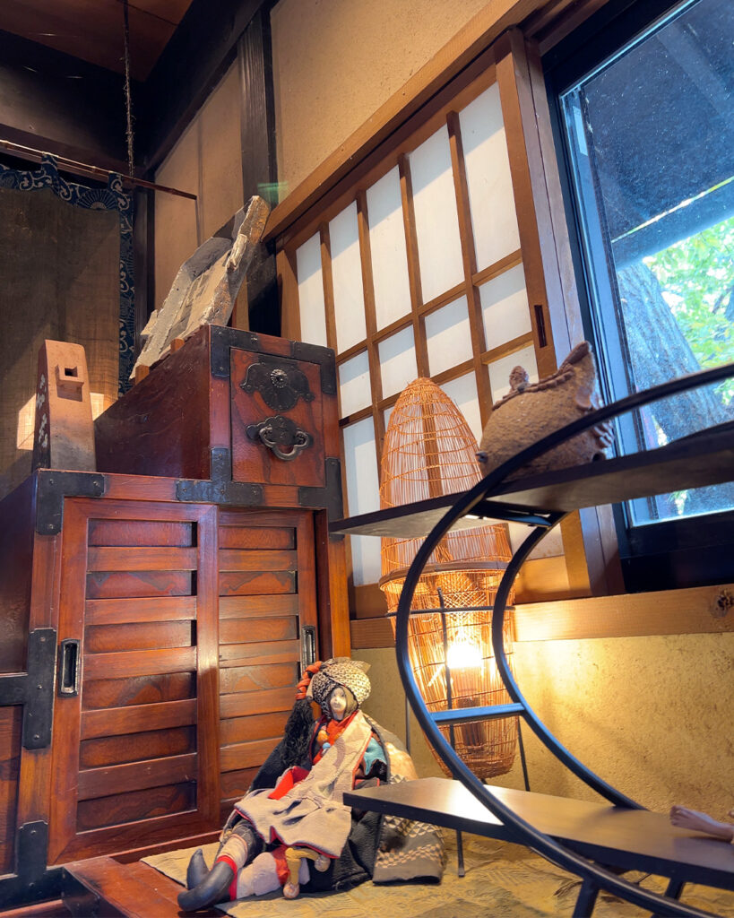 和の落ち着いた雰囲気にアンティーク家具がしっくり馴染んで、つい長居したくなる空間☺️