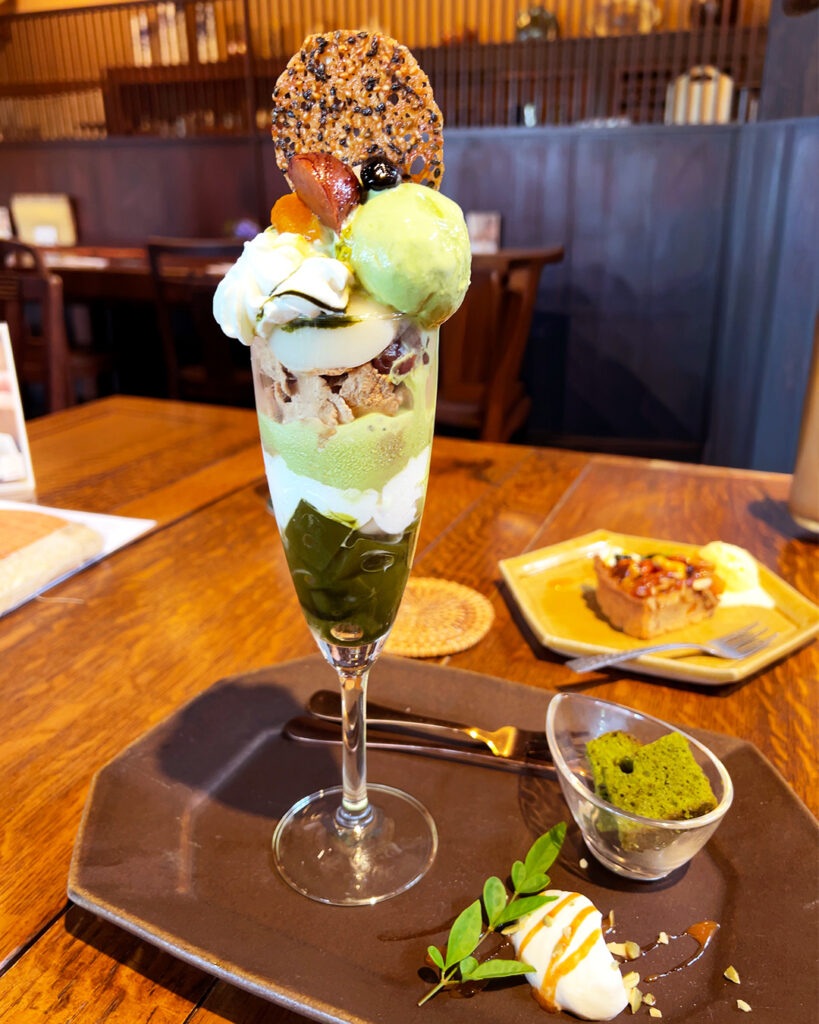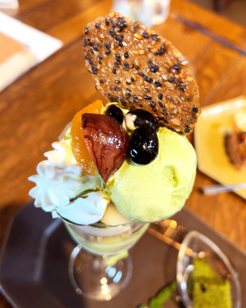 いただいたのは、濃厚抹茶の秋パフェ🍵と木の実ゴロゴロタルトのケーキセット🍰
